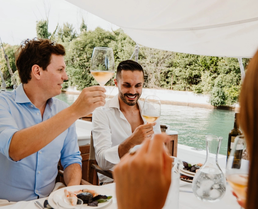 Che tu stia cercando un momento romantico di coppia, una festa privata con amici, un evento aziendale, una celebrazione in famiglia, un matrimonio a bordo o un’elegante serata di gala, realizziamo la tua cena privata in barca a Venezia su misura per farti vivere un’esperienza unica e indimenticabile.