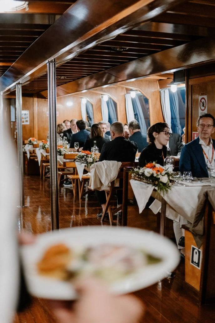 Feste, pranzi e cene in barca riscaldata a Venezia, anche d’inverno. Per eventi da 30 a 500 ospiti, con itinerari e servizi su misura