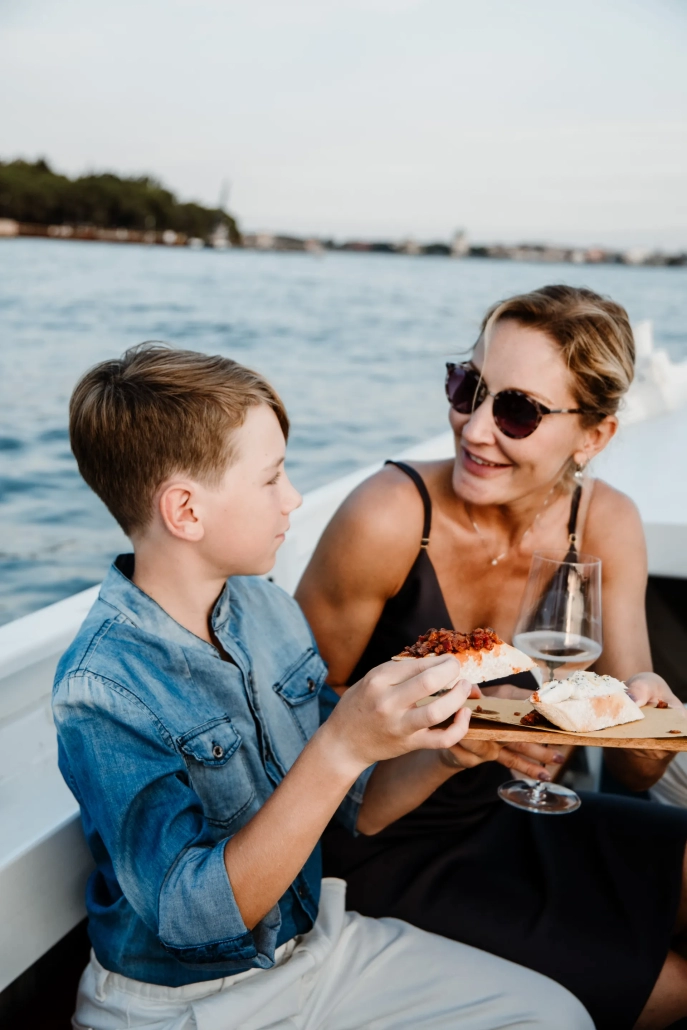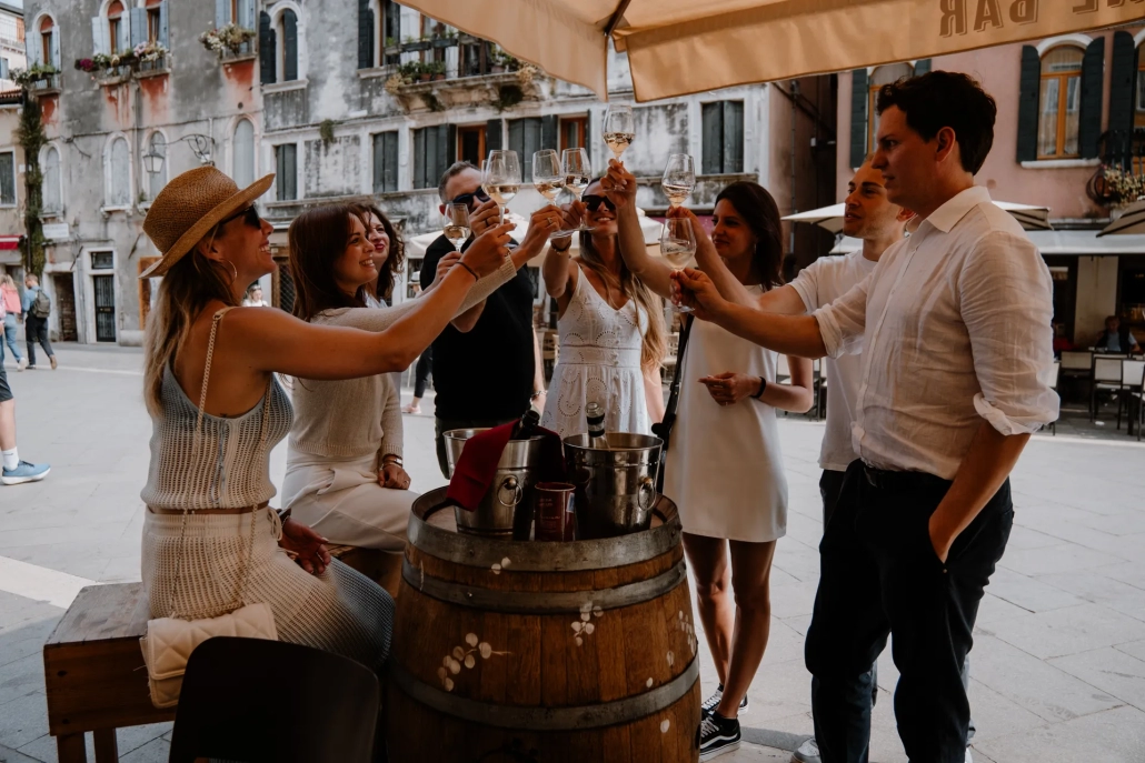 Il Bacaro Boat Tour è un’esperienza unica che unisce il tradizionale bacaro tour a un’uscita in barca, ideale per divertirsi con gli amici e colleghi alla scoperta di Venezia, delle sue tradizioni, della cucina e dei vini tipici.