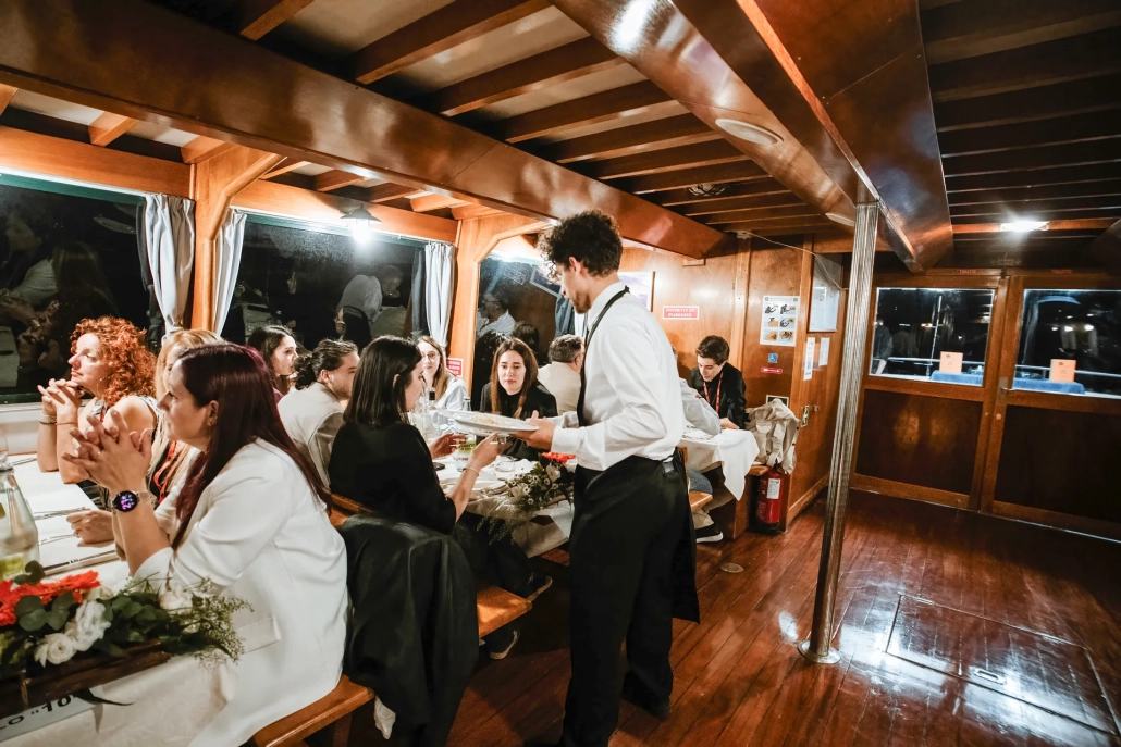 Sorprendi dipendenti e dirigenti con un evento natalizio aziendale indimenticabile in barca a Venezia, a bordo di una barca riscaldata immersa nella magia della laguna veneziana.