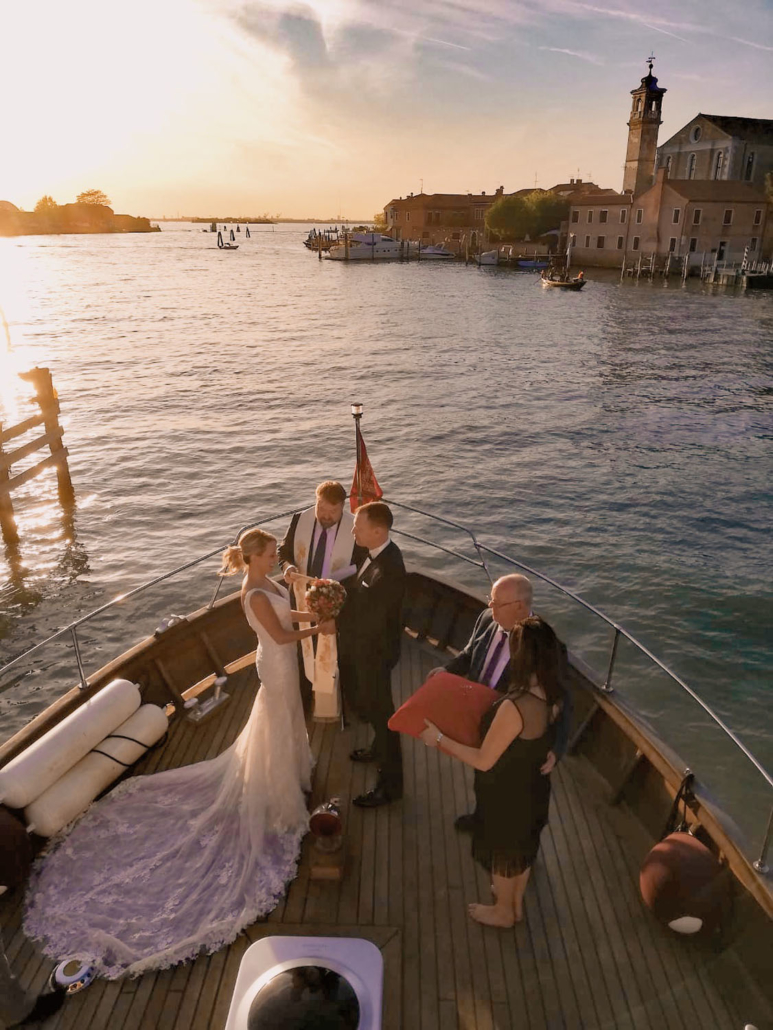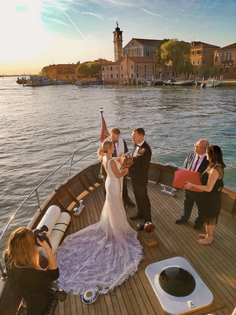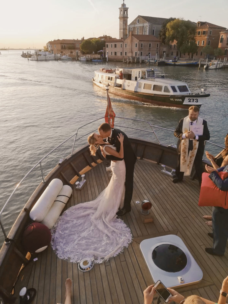 Noleggia la barca ideale per foto e video di nozze a Venezia: scenari mozzafiato al tramonto, tour sul Canal Grande e servizi su misura.