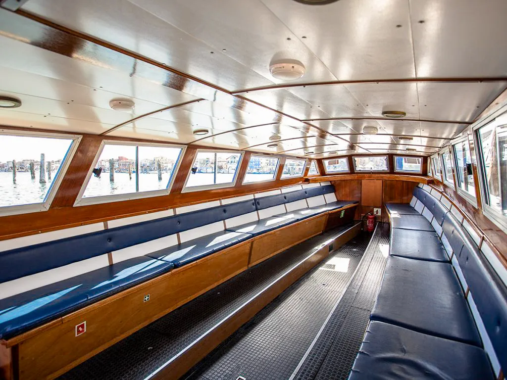 Comfort per spostamenti rapidi o giri panoramici a Venezia con i nostri motoscafi di grandi dimensioni, perfetti per gruppi fino a 110 persone.