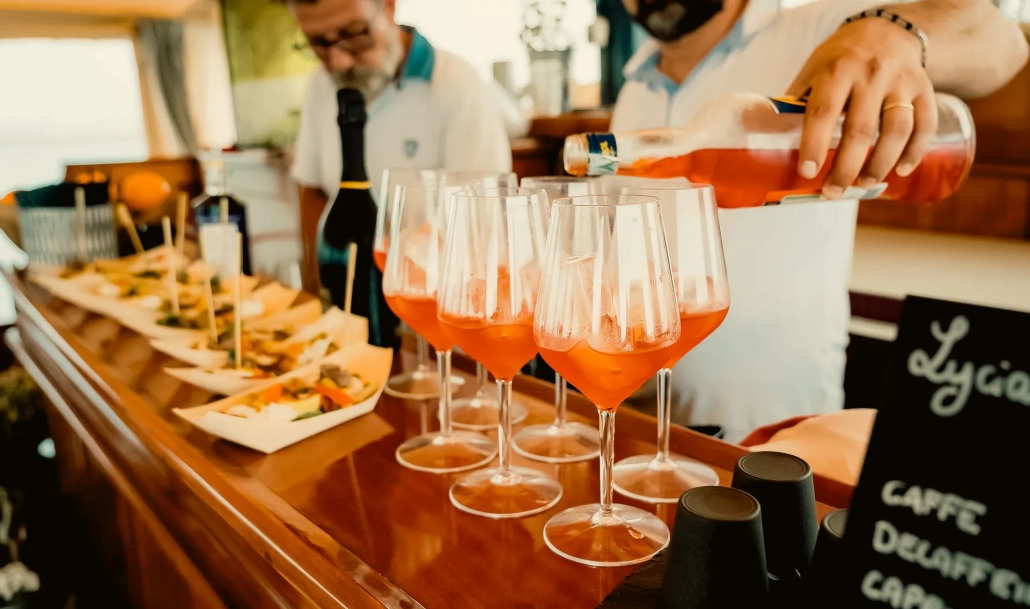 Il tuo premium bar sarà accuratamente fornito, offrendo una selezione esclusiva di differenti tipologie di gin, vodka, rum, cointreau e vermouth, per soddisfare ogni preferenza e rendere ogni cocktail un’esperienza di gusto unica e sofisticata.