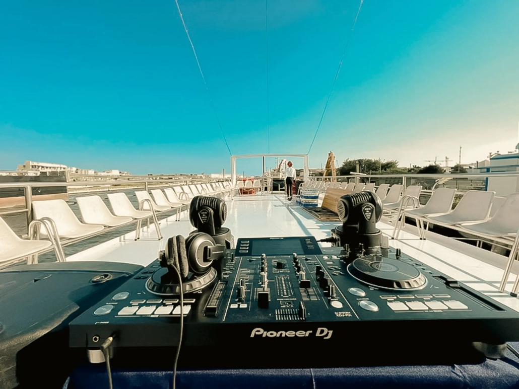 Il servizio comprende il noleggio della consolle, impianto audio e luci adeguato all’imbarcazione prescelta.